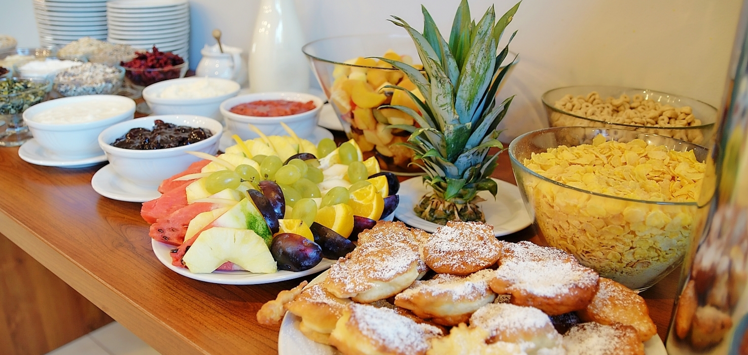 W naszym pensjonacie nad Bałtykiem codziennie serwujemy pyszne śniadania w formie bufetu, w cenie pobytu. Świeże warzywa i owoce, lokalne sery, ryby bałtyckie i domowe dania sprawiają, że każdy dzień zaczyna się od smacznego posiłku.