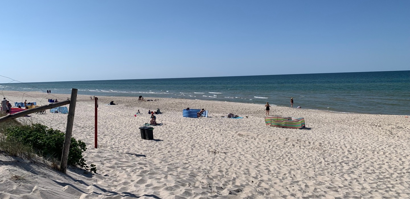 ✅ Plaża w Grzybowie – mniej zatłoczona niż w Kołobrzegu, idealna do spacerów i kąpieli morskich.